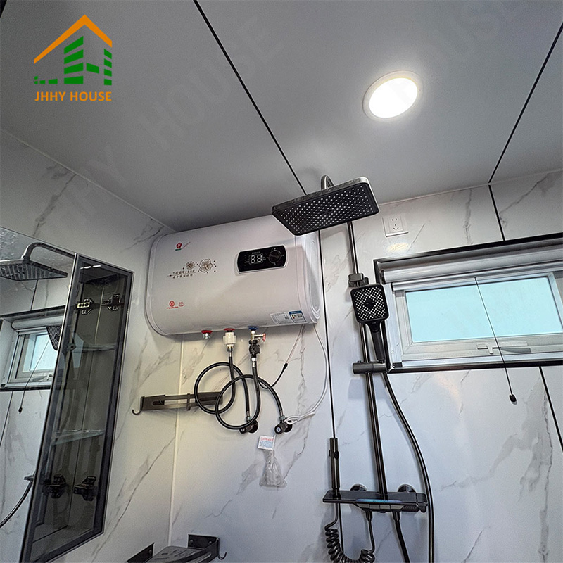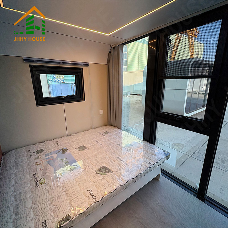 | Innenausstattungssystem | Abgehängte Decke (OSB-Platte + Kohlefaserplatte) Innenwandoberfläche (OSB-Platte + Kohlefaserplatte) (Platte + Kohlefaserplatte) Innenbodenbelag (SPc-Klickboden) Fußbodenheizungssysteme Badezimmertür (Sichtschutz-Schiebetür aus Glas) Waschbecken (Marmor, individuell angefertigt) Badezimmerwände (SPC-Verbundplatten) Badezimmerboden (Fliesen) Möbel wie Betten, Nachttische, Sofas usw. (können individuell angepasst werden) |