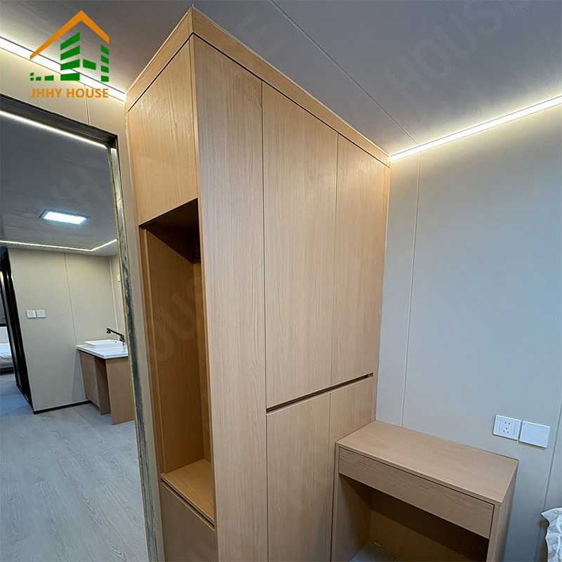 | Innenausstattungssystem | Abgehängte Decke (OSB-Platte + Kohlefaserplatte) Innenwandoberfläche (OSB-Platte + Kohlefaserplatte) (Platte + Kohlefaserplatte) Innenbodenbelag (SPc-Klickboden) Fußbodenheizungssysteme Badezimmertür (Sichtschutz-Schiebetür aus Glas) Waschbecken (Marmor, individuell angefertigt) Badezimmerwände (SPC-Verbundplatten) Badezimmerboden (Fliesen) Möbel wie Betten, Nachttische, Sofas usw. (können individuell angepasst werden) |