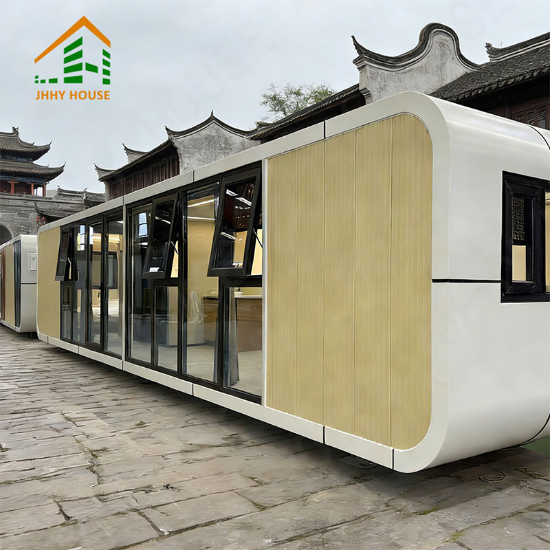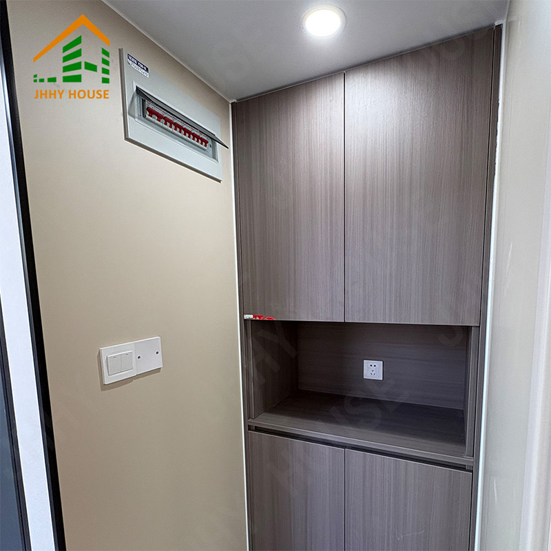 | Innenausstattungssystem | Abgehängte Decke (OSB-Platte + Kohlefaserplatte) Innenwandoberfläche (OSB-Platte + Kohlefaserplatte) (Platte + Kohlefaserplatte) Innenbodenbelag (SPc-Klickboden) Fußbodenheizungssysteme Badezimmertür (Sichtschutz-Schiebetür aus Glas) Waschbecken (Marmor, individuell angefertigt) Badezimmerwände (SPC-Verbundplatten) Badezimmerboden (Fliesen) Möbel wie Betten, Nachttische, Sofas usw. (können individuell angepasst werden) |