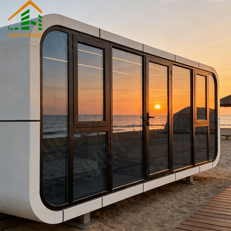 The main galvanized steel structural double frame Case aluminum plate (2.0mm) Shell surface treatment (fluorocarbon paint spraying process) 120mm polyurethane foam insulation Panoramic glass curtain wall (6+12A+6+12A+6 insulated low-e tempered glass) Panoramic glass oversized sunroof (6+6 laminated tempered glass+retractable canopy) Entry door (fire-rated steel door-with fingerprint waterproof combination lock) |